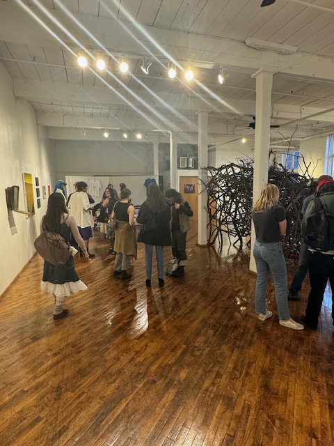 The members of the collective who were involved in the organization and installation for this show are Fiona Agger, Celia Jailer, Eli Kleinsmith, Lucas Mockler and Levi Baruch. They found the artists for the event from their previous art space, friends, and social connections. But ultimately a lot of artists were found by the members of the collective’s daily trades and employment.